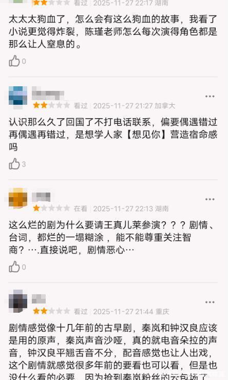 剧情拖拉、狗血+钟汉良老了、秦岚肿胀 等待7年,还可以说人家深情;等待12年,就属于是非常死脑筋的程度了。 更加离谱的是,男主身边带着的儿子,居然是女主亲生的?